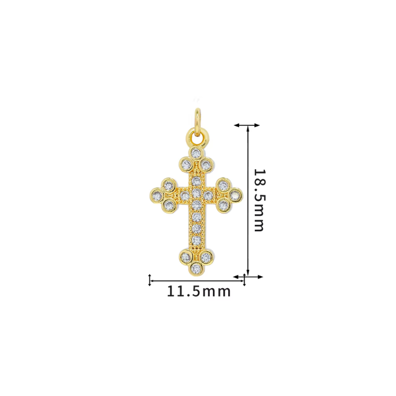 Shine bright with the Itsy Pave Cross Charm, designed to bring a subtle touch of spirituality and elegance to your jewelry collection. Featuring sparkling CZ stones set in a classic cross design, this charm embodies grace and faith, making it a meaningful and stylish accessory. Whether worn daily or gifted to a loved one, the Itsy Pave Cross Charm adds a radiant glow to any ensemble. Key Features & Design Details * Design: * A classic cross design adorned with sparkling CZ stones that provide a brilliant shine. * A perfect blend of elegance and spirituality, ideal for adding a subtle touch of meaning to your look. * Materials: * 18k gold-plated brass for a luxurious and long-lasting finish. * CZ stones set in a pave design for a sparkling and radiant effect. Materials, Size, & Specifications * Material: * 18k gold-plated brass for a durable and elegant finish. * CZ stones for sparkling brilliance and an added layer of luxury. * Dimensions: * Height: 16mm * Width: 11mm * Ideal For: * Deep South Originals charm bars, everyday wear, gifting, or as a symbol of faith. Care Instructions * Clean with a soft, dry cloth to maintain its shine and brilliance. * Avoid exposure to harsh chemicals or abrasive surfaces to preserve its beauty. * Store in a dry, airtight container when not in use.