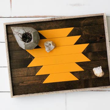 The classic shape of the tray follows a simple yet impactful design. The extravagant crocodile look surface is further highlighted by the high-quality stainless steel handles. The highest quality is important to us, which is why it is handmade within Europe. Product description: Rectangular tray in imitation leather crocodile print black Size: approx 45 x 33 cm, height 6 cm stainless steel handles Material: faux leather, stainless steel high-quality seams on the edges Surface durable, easy to clean & wipe clean handmade, eco-friendly