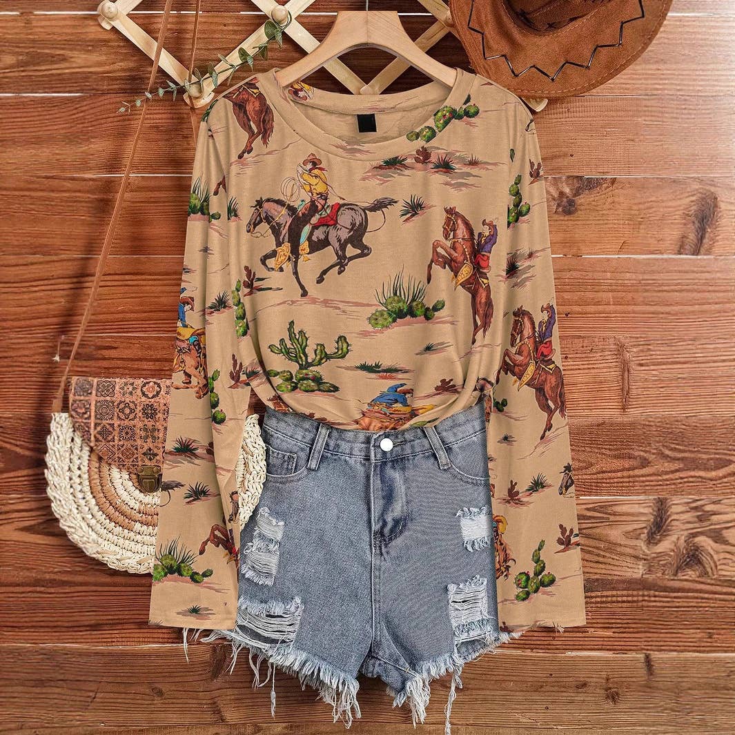 Ethnic Print V-Neck Baggy Shirt
