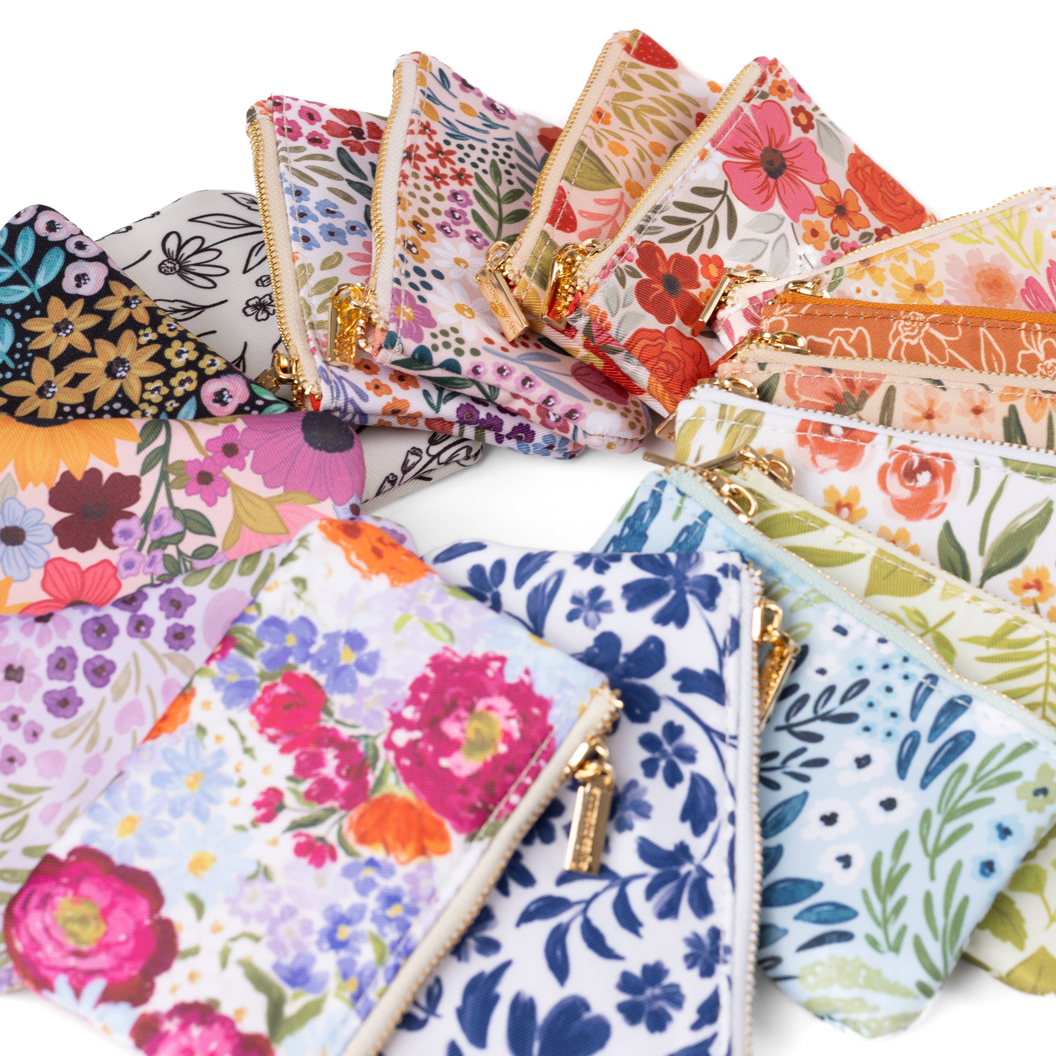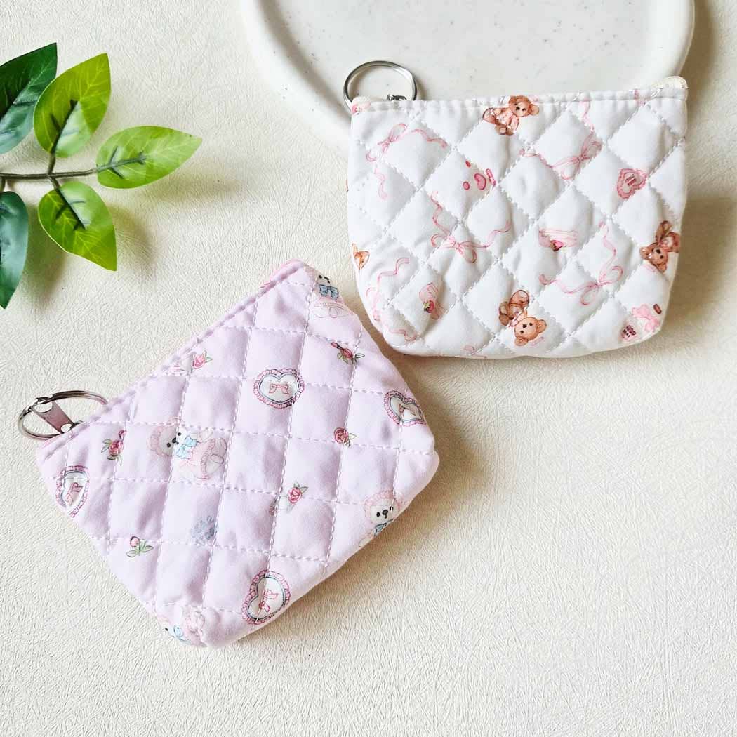 Made using a mixture fabric ends. Eco friendly, non waste. Front is pieced, back is soft denim or chambray. (wrist strap shown is sold separately) Measurements approximate: 5" Wide x 5" Tall Bag Features: -Nylon YKK zipper. -Fully lined in cotton fabric. No raw seams. -Thin inner stabilizer. -Side key ring. Bag Uses: -Lipstick and smaller makeup essential. -Give as a gift with a gift card inside. -Store your women's personals. -Coins, dollar bills. -Credit cards and reward cards, receipts.