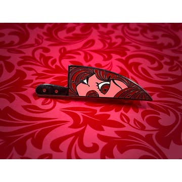 Pink heart dagger inspired by Jenn Woodall's Magical Beatdown mini-comic 1.75-inch enamel pin with 2x rubber clutch Artwork by Jenn Woodall, follow her Instagram.