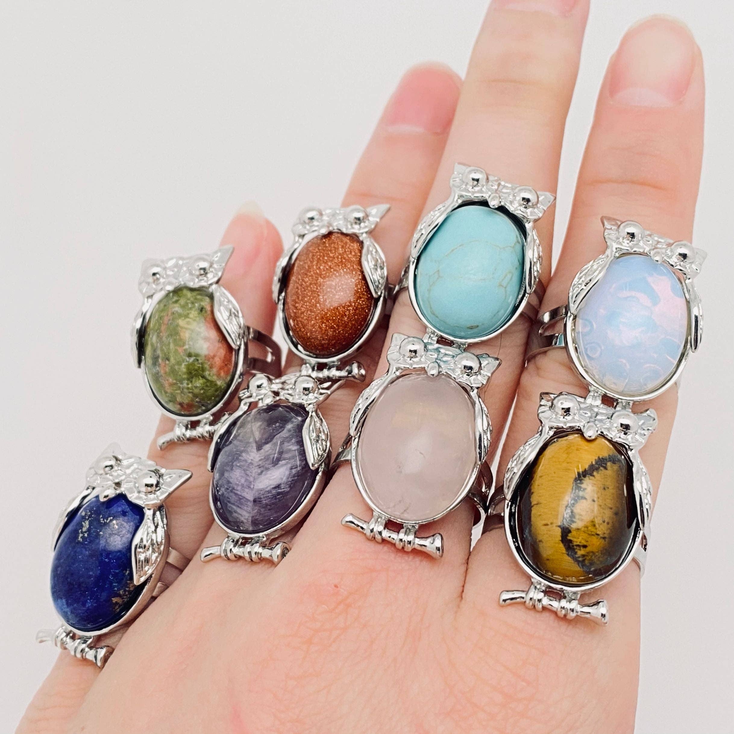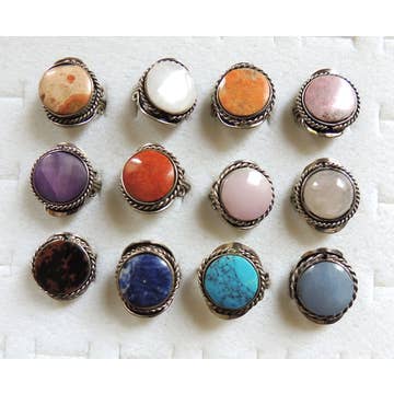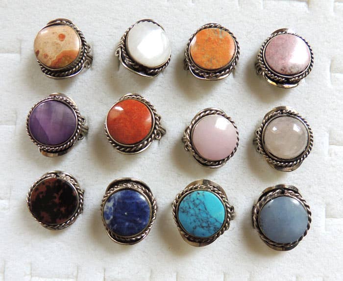 This is for a mix of 20 crystal silver plated copper rings. Ring bulk set will be randomly selected by our team. Select crystal type at checkout. Crystal rings available: Moss Agate, Rose Quartz, Aventurine, Jade, Obsidian, Carnelian, & Moss Agate Rings will be an assortment of sizes and may range from 6-14 with majority being 6/7/8/9. Price listed is for one ring with minimum order of quantity 20 . Selection at checkout is for the quantity you want. Ex. 60 equals 60 TOTAL rings.