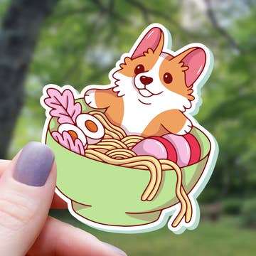 Corgi Ramen Bowl Foodie Sticker - 3"