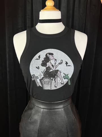 Aesthetic: Gothic and Grunge Color: Black Sleeve Length: Sleeveless Weight: 113.4 g (4 oz) Dimensions: 12.7 x 12.7 x 2.5 cm (5 x 5 x 1 in)