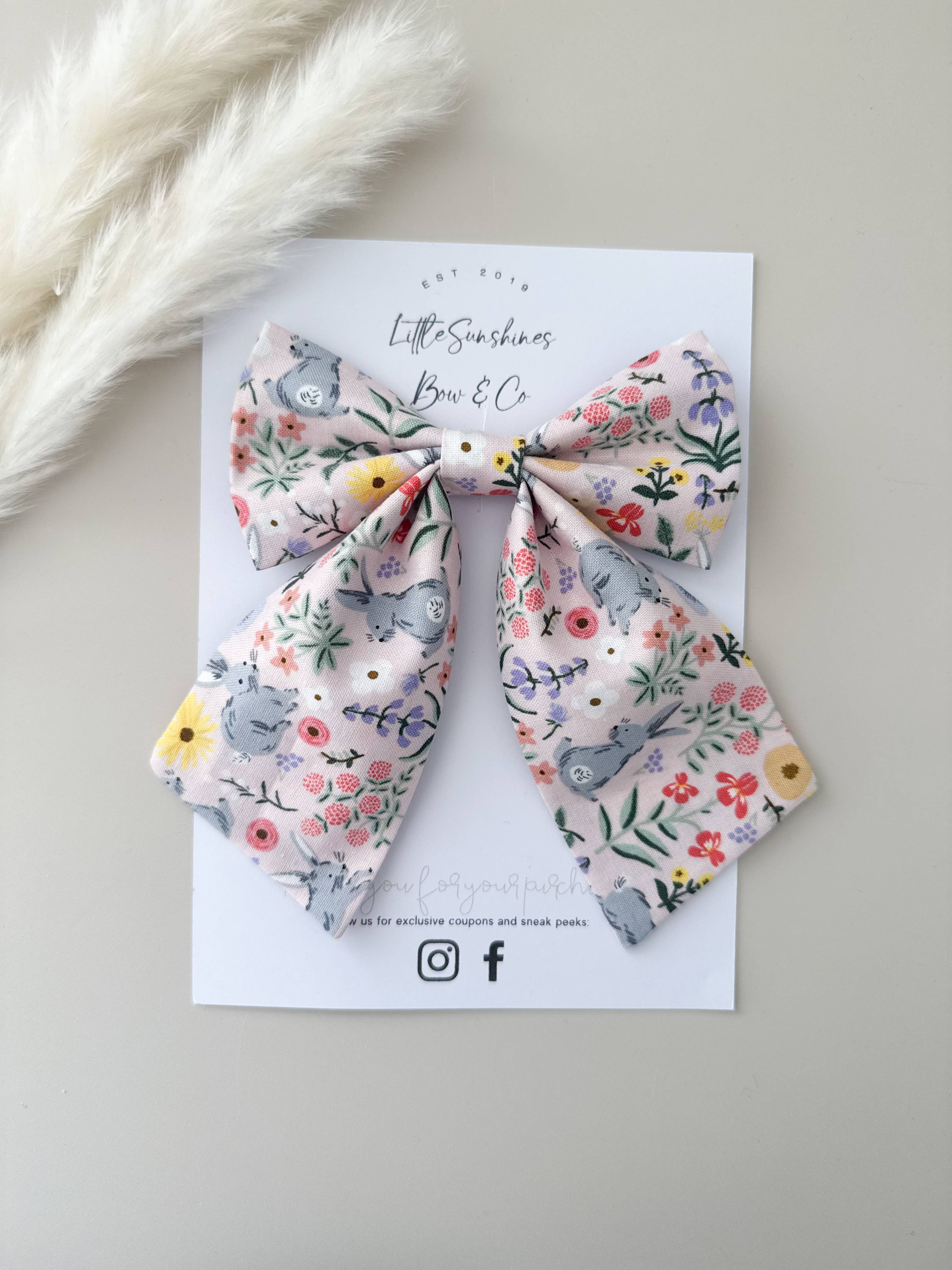 + Color: Pastel Floral & Soft Pink + Pack of 2 bows with alligator clips + Also available in nylon headbands - see other listing + These bows are handmade so they may vary slightly in size. + Size: Approx 2" x 3" + Color may appear slightly different than the photo due to lighting. + Every bow is unique and print placement will not be exactly as shown in photo. + Each Bow & Clip set comes packaged ready to sell in a clear protective, resealable sleeve.