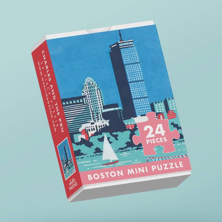 This 24-piece mini puzzle features Boston’s beloved duckling statues dressed for the season in bright red scarves. Painted in a sweet mix of white, green, and red, the artwork captures the playful charm of the ducklings and makes for an adorable, travel-friendly puzzle. Perfect as a gift, stocking stuffer, or little moment of joy for anyone who loves Boston. The "Make Way for Ducklings" statues are nestled in the Boston Public Garden and were created by sculptor Nancy Schön in 1987. They bring to life Robert McCloskey’s classic children’s book Make Way for Ducklings, a story about Mr. and Mrs. Mallard raising their family in the city. Over the years, the statues have become one of Boston’s most treasured landmarks—often dressed up for holidays, sports events, and community celebrations. Puzzle size: 3.5” x 5” Box size: 3.5" x 2.6" x .75" (playing card box size)