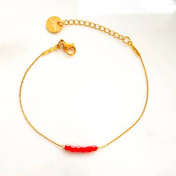 An easy-to-wear and put-on bracelet, mounted on elastic with tinted glass beads. All our jewelry is designed and assembled in France.