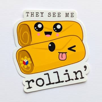 Funny Lumpia Sticker - Filipino Stickers Phrase: They See Me Rollin' A must-have for lumpia lovers, foodies, and anyone who enjoys a little humor. It's an ideal way to add a touch of joy to your everyday items and for anyone who loves Filipino culture and food. - Matte Sticker - Size: 2.8 x 3 inches - Material: Thick, durable vinyl protects your stickers from scratches, water, and sunlight - WATERPROOF STICKERS Paper Picture Mama is an AAPI-owned small business. The Filipino Collection is for anyone who’s proud to celebrate Filipino culture. And the best part? Every purchase supports Filipino youth education and cultural programs.