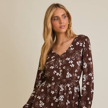 WHOLESALE FLORAL LONG SLEEVE BACK TIE MINI DRESS