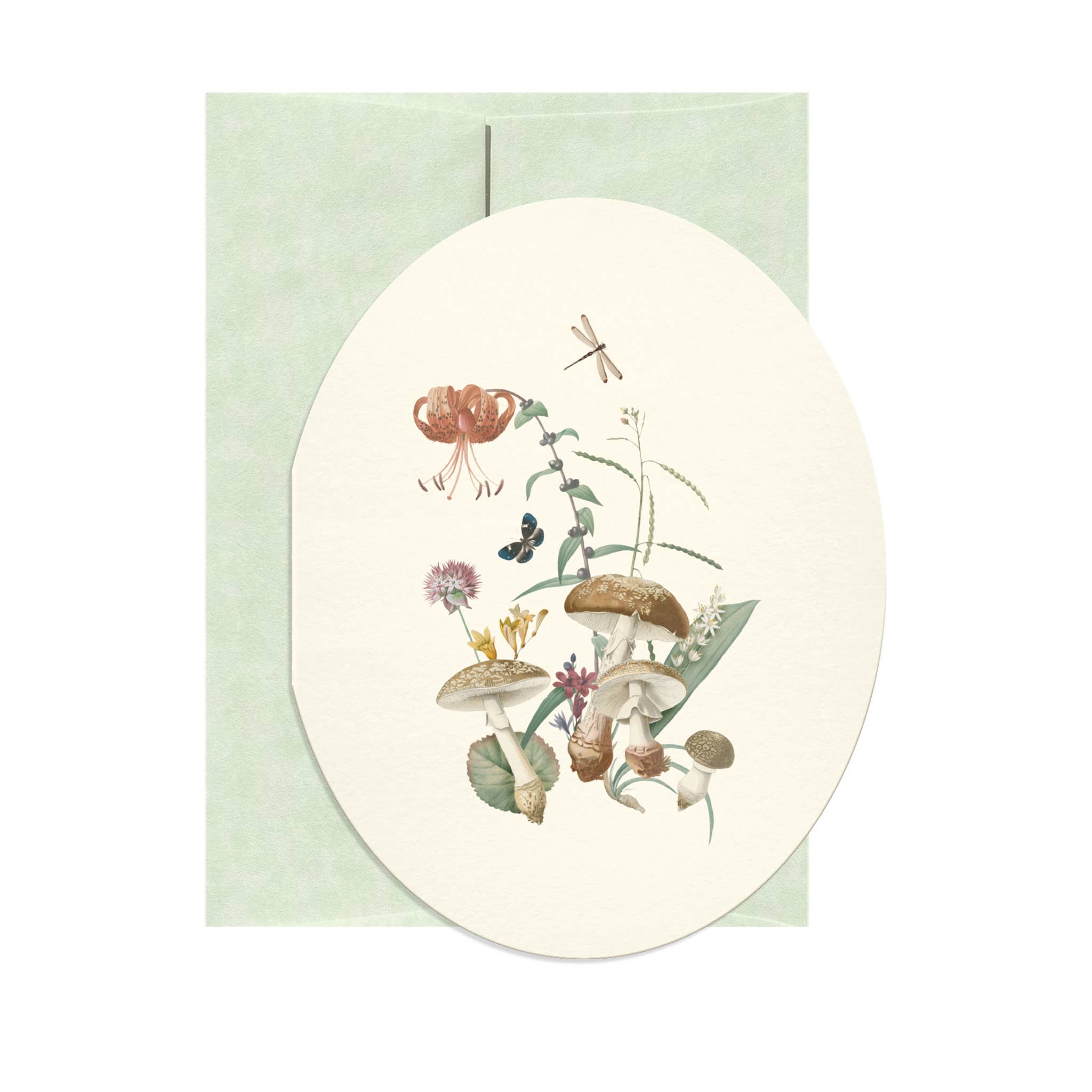 A2 Folded Oval Card and Parchtone Envelope Blank Interior 4 Color Digital Offset Superfine Cream White Paper FSC Certified