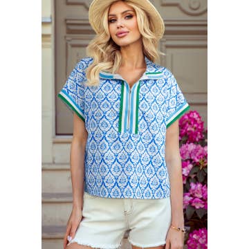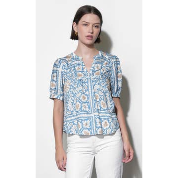3/4 Sleeve Ruffneck Top - Flora