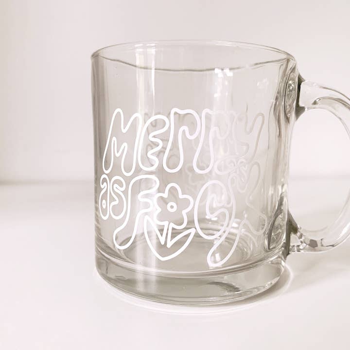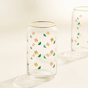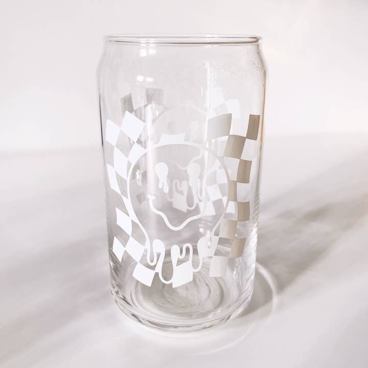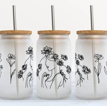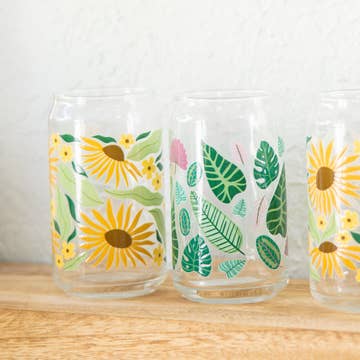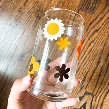 This can glass features a range of emotions on the cutest little moody flowers. * 16 oz. clear glass w/ white professionally printed wrap; no vinyl! * Great for any cold beverage * Glass is dishwasher safe + hand wash preferred * Ships in branded gift tube