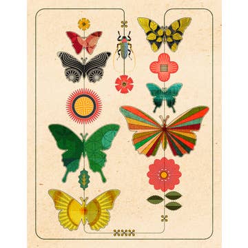 Folk Meadow - Wholesale Art Print - Red Admiral Butterfly & Ladybugs Print - 8x102