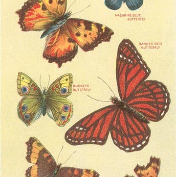 Folk Meadow - Wholesale Art Print - Red Admiral Butterfly & Ladybugs Print - 8x100