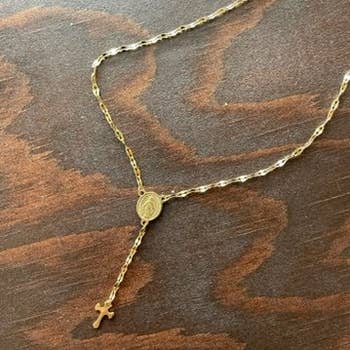 Gorgeous Rosary made from fine 18k gold filled. Length 16" + 2" extender Hypoallergenic jewelry Wear Goldfi jewelry while bathing, on the beach or in the pool Enjoy the best 18k Gold Filled that is made to last Have available the best jewelry components and supplies to create your own collection. Make your jewelry in a unique, modern and stylish way. With an unrivaled variety, at GoldFi you buy straight from the factory to your atelier. Find many more styles in our GoldFi Etsy store. https://www.etsy.com/shop/goldfi With a large inventory, we have available a selection with a variety of styles ready to be delivered to you immediately.