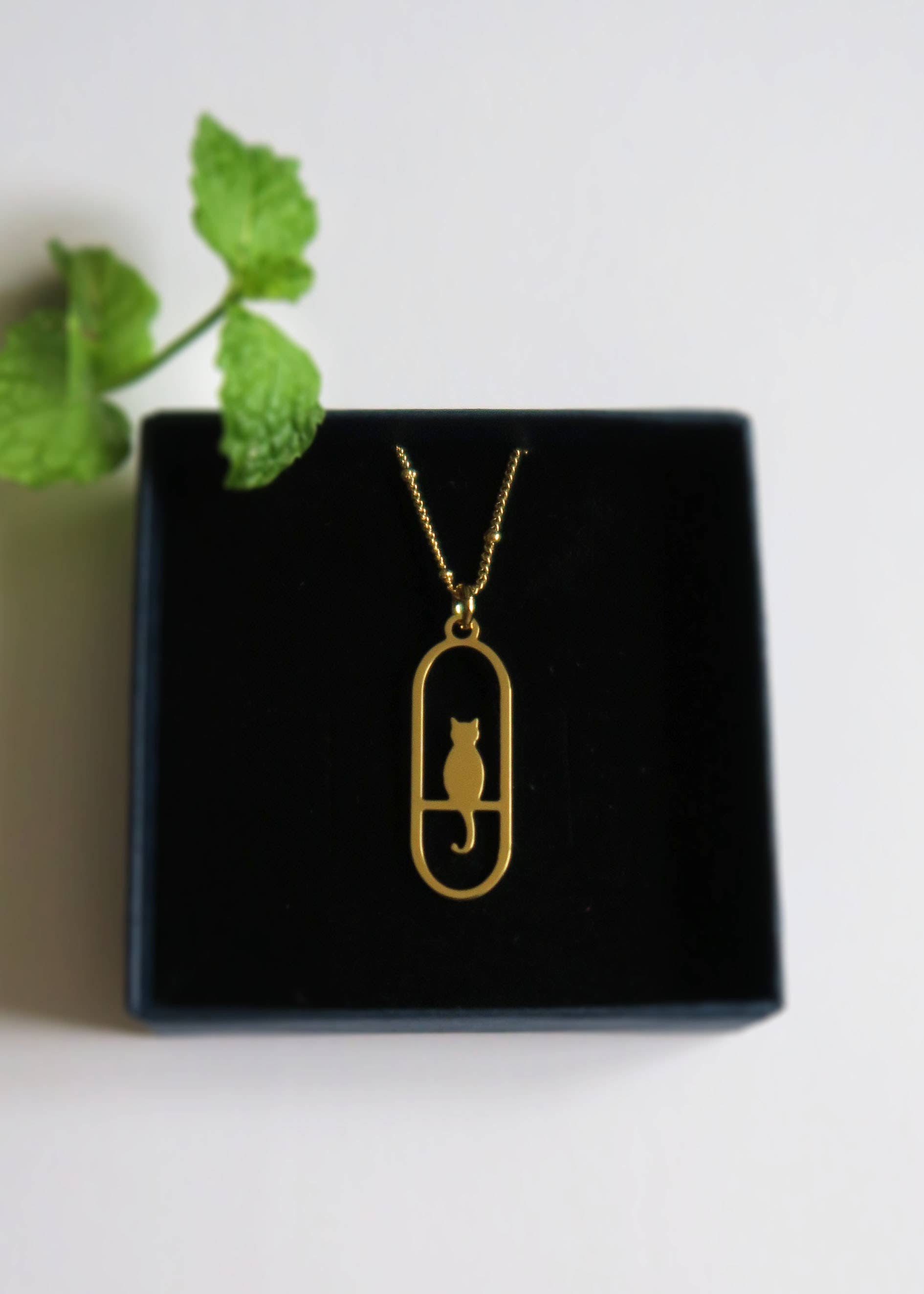 specifications Cat motif necklace in fine gold-plated or silver-plated metal. The chain measures 42 cm and can be adjusted to 40cm. Manufacturing I draw and create by hand the prototype of my pattern by sawing it into a brass plate. The patterns are then etched in small batches, Once finalized I do a little polishing and cleaning, and my pendants are sent to my Parisian gilder who does the gold or silver finishes. Then all I have to do is put everything together. *Sold without packaging*