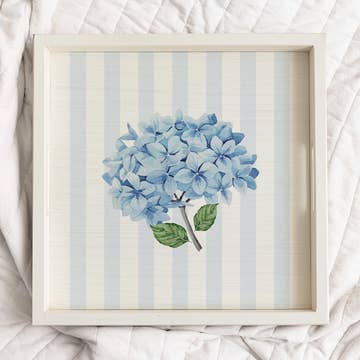 Celebrate classic summer style with the Islesboro Summer Tote tray! Featuring a timeless canvas tote brimming with blooming blue hydrangeas, set against crisp coastal stripes, this design brings effortless charm to beach houses, garden brunches, and sunny days by the sea. Handcrafted in Finland from birch wood sourced from Certified Sustainable Forests, each tray is sealed with a transparent layer to protect the wood. ● Sizes: Large: 16.5" x 12.5" - Minimum order of 4 Round: 16" - Minimum order of 4 Small: 11" x 5" - Minimum order of 8 ● Your beautiful trays are made to order. Please allow 4-5 weeks for shipping. Trays may ship separately from other products. ***PLEASE NOTE: We will adjust orders to reflect minimum quantities.*** [hydrangea tote tray, summer serving tray, coastal kitchenware, beach house decor, preppy home accessories, blue striped tray]