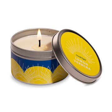 8oz Lemon Verbana Soy Candle Details: •SCENT NOTES: lemon, orange & lemongrass •CANDLE SIZES: 8oz White Candle Tin with Gold Trim | Double Wick Candle | Made in the USA with soy wax, phthalate free fragrances and lead free cotton wicks. •HOME DECOR/GIFTS: Our soy candles help your customers experience the light, the scent and the peace. •CANDLE CARE: burn for 2-3 hours and trim your wicks between use •SCRIPTURE: "That ye may be blameless and harmless, the sons of God, without rebuke, in the midst of a crooked and perverse nation, among whom ye shine as lights in the world;" ~Philippians 2:15