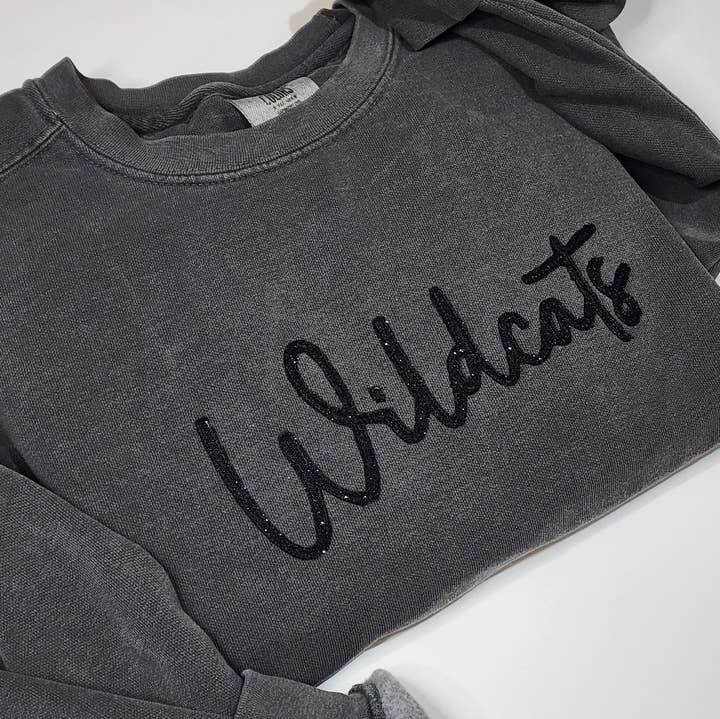 Our #1 wholesale bestseller for over a year – now available in your most-requested color combos! Perfect for school spirit, local teams, or trending fanwear your customers will love. Boutique-ready and designed to fly off your racks! ✨ DETAILS: Machine-embroidered & glitter appliqué Unisex fit crewneck sweatshirt (true to size) Available in multiple popular colors with black cotton and white GLITTER letters You customize the TEAM NAME – we handle the rest! 🛒 HOW TO ORDER: Choose your crewneck color from the dropdown. In the Order Notes, enter your desired team name (Ex: "Panthers", "Eagles", "Mustangs"). We'll match the lettering and style to the selected color combo for a polished, boutique-ready finish. Designed and made in the USA