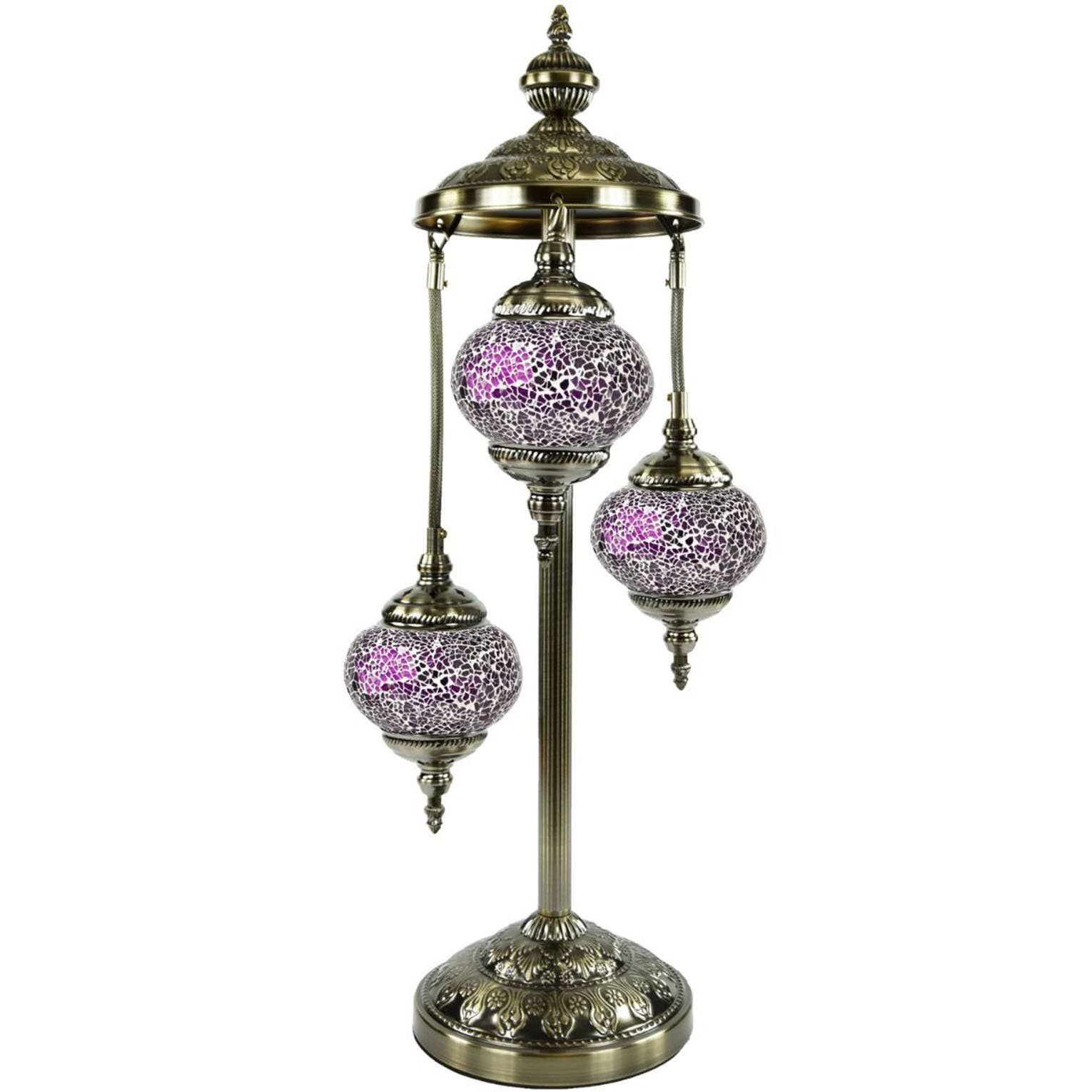 3" PRESSED MOSAIC SHADE "NIGHTLIGHT" TABLE LAMP - BOXED - LED INCLUDED Each mosaic lamp is individually handmade in Turkey using high-quality materials and traditional craftsmanship. Our lamps feature double-layered mosaic glass shades with rich, vibrant colors and intricate patterns, ensuring no two pieces are ever exactly alike. Even when ordering the same color or style, variations in pattern and glass placement are part of the artisan process unless purchased as a matched set. All lamps include energy-efficient LED bulbs and are constructed using thicker metals, larger glass pieces, and durable components that meet or exceed international safety standards. Designed with a modular build, shades of the same size are interchangeable across compatible bases, offering flexibility for retailers and customers alike. With new designs and styles released regularly, these mosaic lamps make striking accent lighting for homes, boutiques, gift shops, and hospitality spaces while delivering consistent quality and timeless appeal.