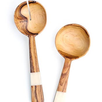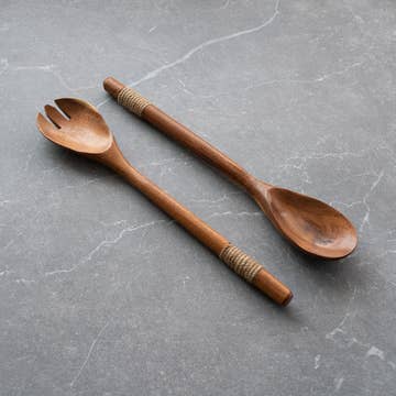 Upgrade your kitchen with these unique, handcrafted teak wood salad servers. The perfect tableware for when serving up a hearty salad. The organic texture and beautiful brown wood grain immediately elevates your table setting. Handcrafted using eco-friendly and sustainable teak wood. Our teak wood tableware collection is unique in design, durable, resistant to cracking, chipping, or warping, and food-grade safe. (PRODUCT INFORMATION): Size: 11" L x 3" W inches Material: Teak Wood This item will have slight variations as this is a one-of-a-kind handmade product Care: Wash with soapy water after use. Pat dry with a cloth and allow to air dry. Lemon can be used to take away any smell that seeps into the wood. Apply food grade mineral oil to wood to maintain the quality of the wood. Do not soak in water for extended periods of time. Do not put dishwasher.