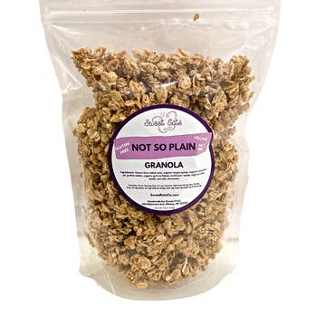 Made in United States Contains: Coconut and Tree nuts Ingredients: Certified gluten-free rolled oats, almonds, expeller pressed canola oil, organic maple syrup, unsweetened coconut flakes, organic raw sugar, vanilla extract. Weight: 283.5 g (10 oz) Dimensions: 17.8 x 6.4 x 22.9 cm (7 x 2.5 x 9 in)
