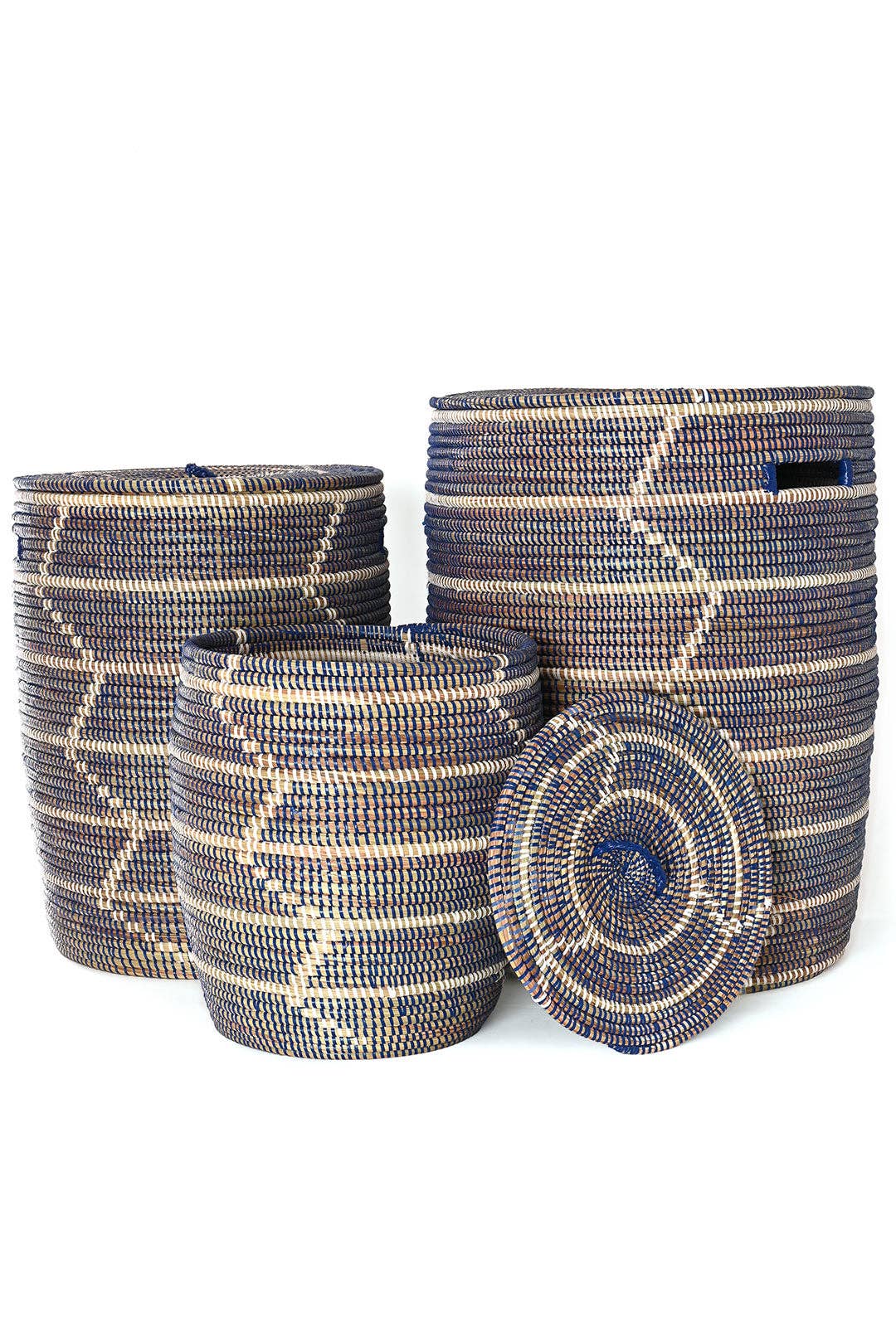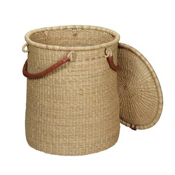 African laundry hampers bring amazing artisan craftsmanship into our living spaces. Our laundry hampers are handwoven by an association of more than 100 rural Wolof women in the West African nation of Senegal. Crafting baskets allows rural women to earn income from the comfort of their community. Sold singly. Because this is a handcrafted item, each may vary slightly. Dimensions: 15"L x 15"W x 30"H Crafted from: Cattail stalks, plastic