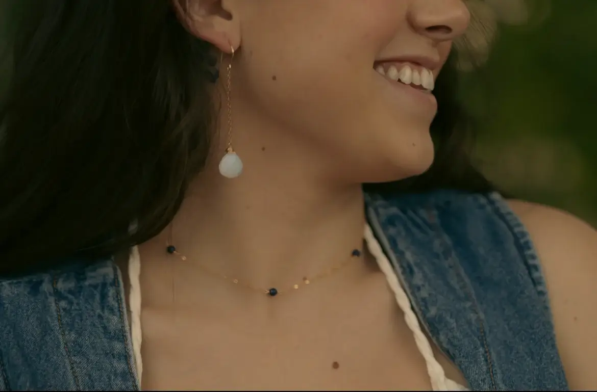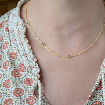 serpentine, choker style Made with 14k gold-filled chain and findings with a 2" extender. 12.5/14.5"