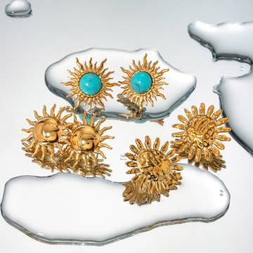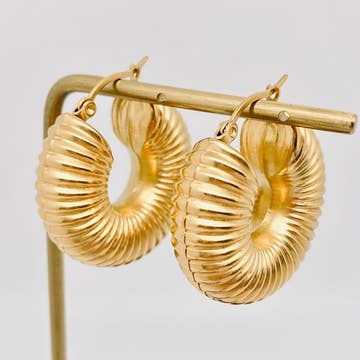 Beautiful 18K gold plated tarnish-resistant statement earrings made of quality sensitive skin-friendly (nickel-free) materials. Materials: 18K Gold, Brass. Color: Gold. Size: 1" L Care: Keep from soaps, oils, perfumes, pools for pristine condition.
