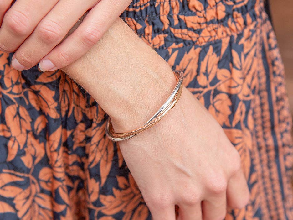 Triangles are a sign of strength! Hinged to fit a medium-sized wrist.
