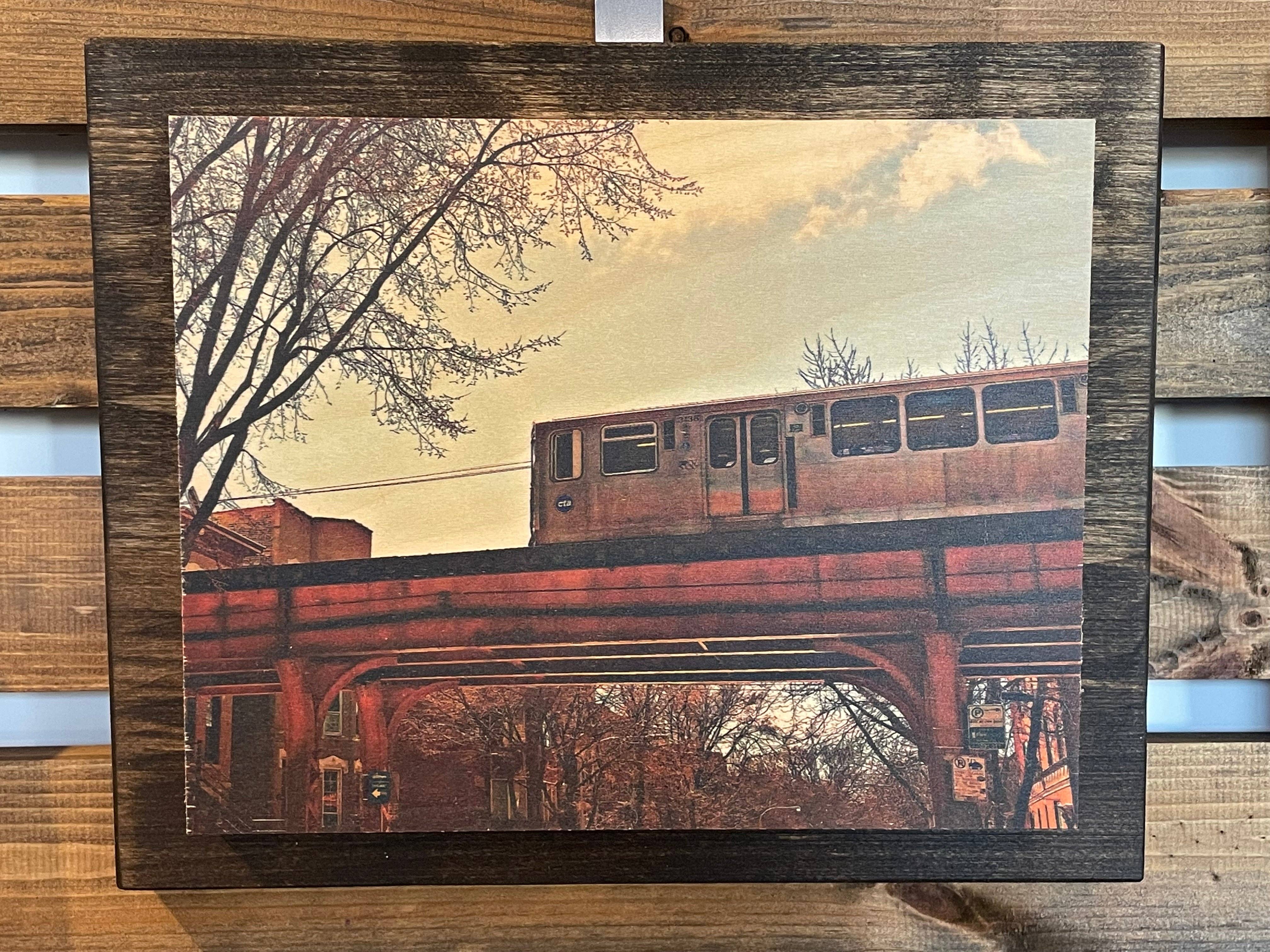 UV printed on .75" thick birch plywood, mounted to 9.5" x 11.5" walnut finished backing board. Sawtooth hanger screwed to back.