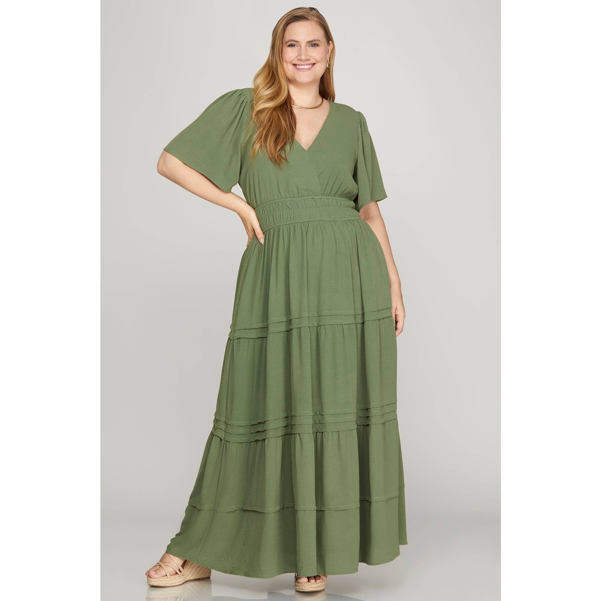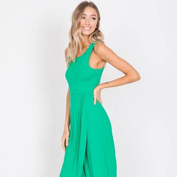 Reborn j best selling summer dresses. Deep v-neck detail basic maxi dress detailing wide side slit, inside pocket, back yoke detail on soft heavy rayon jersey. Heavy Rayon jersey. Model height is 4' 1", wearing on the small size.