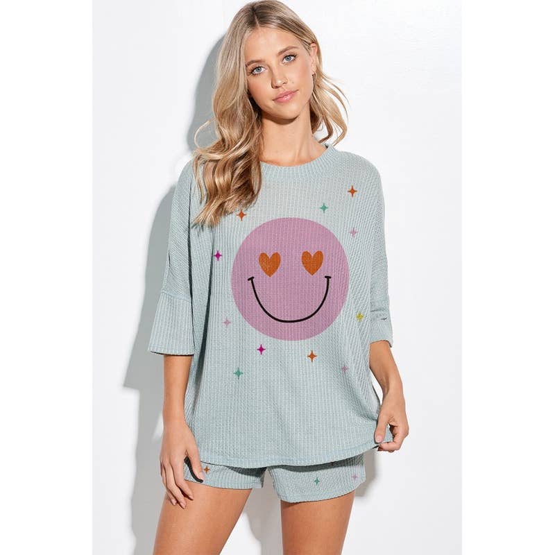 STAR SMILE TOP AND PANTS LOUNGE WEAR SET 95% POLY 5% SPAN MADE IN USA SLH7616