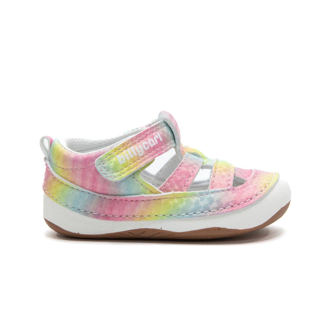 Rainbow fun for toddler girls. AMELIA sandals are practical, pretty and the extra elastic across the top that makes for a really wide opening and so easy to put on. With a flexible non-slip rubber sole, an ergonomic design and protective closed toes, AMELIA sandals go with every outfit and are so easy to wipe clean. AMELIA is podiatrist recommended and great for precious feet. With a soft inner lining, a flexible rubber sole and lightweight materials that won’t weigh little legs down. Billycart Kids sandals can be worn with or without socks and with no risk of blisters! And they’re great for running, jumping and playing both inside and out. AMELIA comes in toddler sizes only (bk 7.5, 8 and 9) and is best for a regular to wide fit. Learn more about the importance of barefoot walking for babies and toddlers. Style, colour and fit Brand: Billycart Kids Style: Sandals with velcro ankle straps Colour: White Manufactured sizes: 23 / 24 / 25 Restock Dates: Check FAQ Fit: Best suited to a REGULAR or wide foot. This style also comes in: * Tan (in our LENNIE sandals) * Light Pink (in our PIPER sandals) * Navy Blue (in our TARYN sandals)