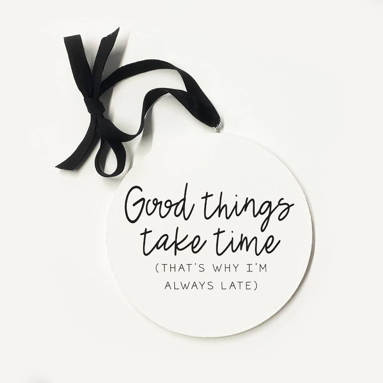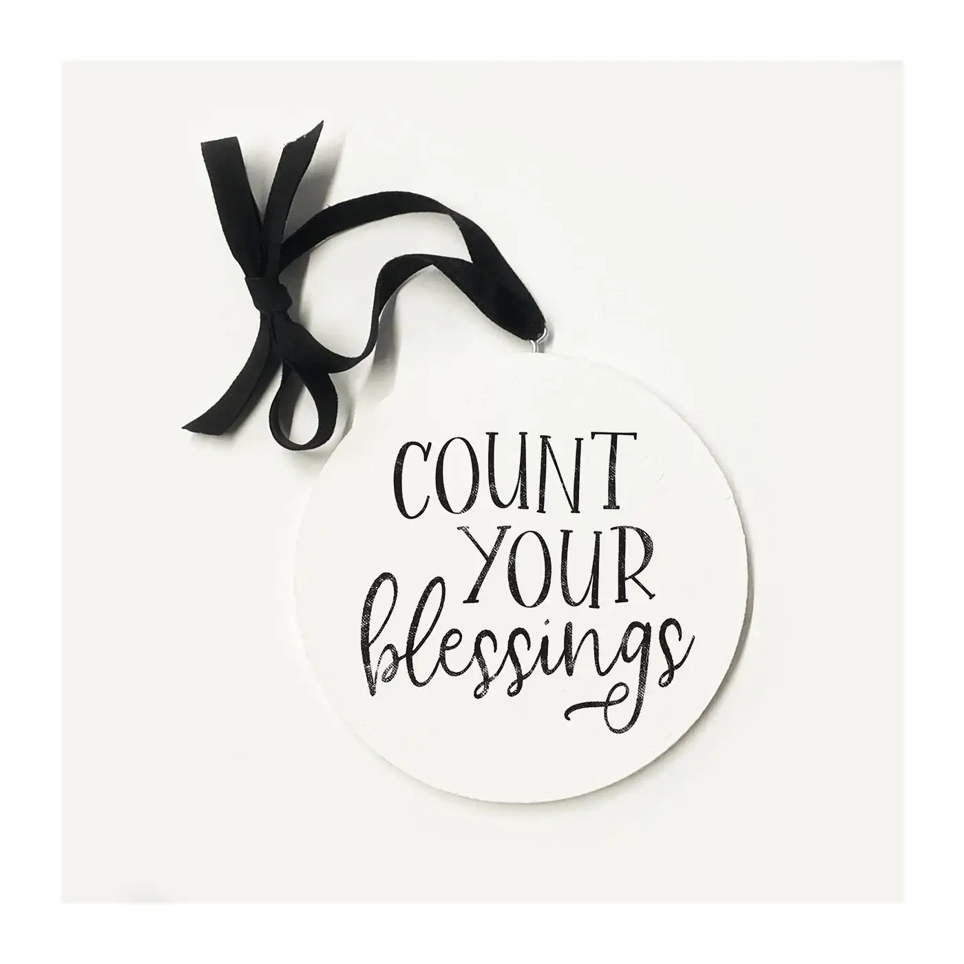 This unique 5-inch wooden double-sided circle can be displayed anywhere in the home with the beautiful attached ribbon. Made from birch plywood with a hand painted face and printed with UV cured ink. Easy to clean with a dry cloth.