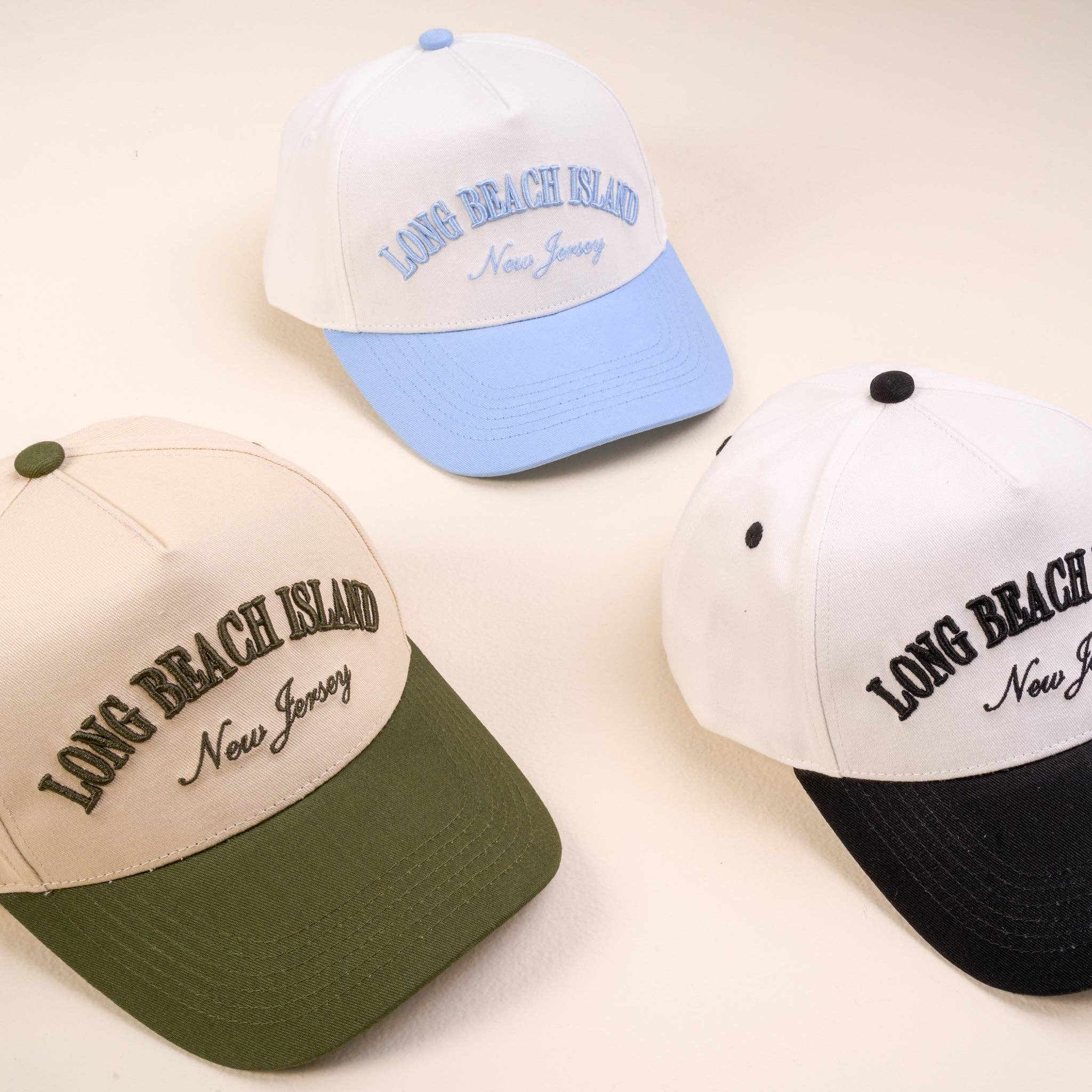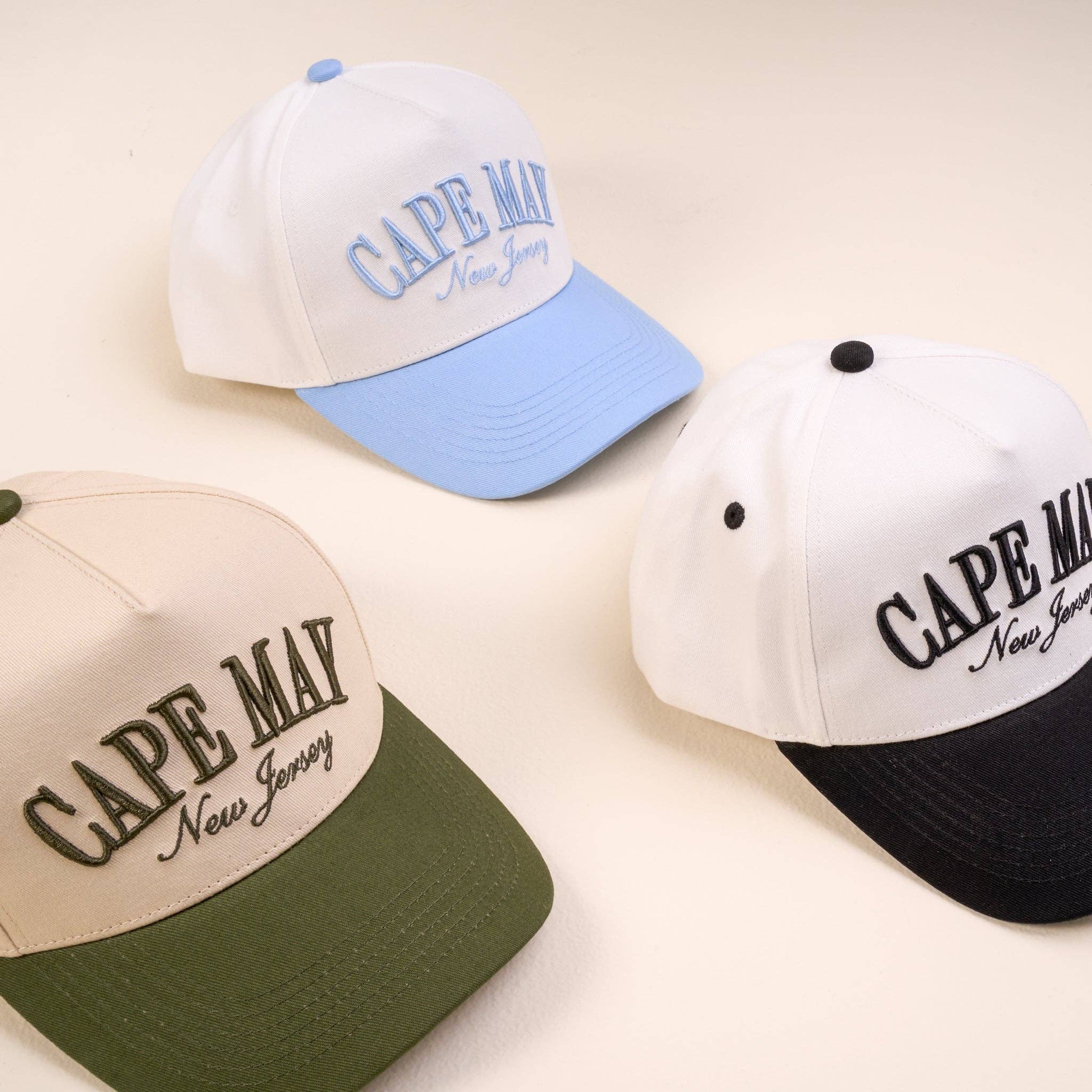 Your new favorite Avalon, New Jersey Trucker Hat! Premium Quality & Comfort: Made from high-quality cotton canvas, this hat is structured yet, soft, breathable, and built for durability. Whether you're on a morning coffee run or watching the sunset, it's designed for all-day wear. Adjustable Fit: Featuring an adjustable back strap, this hat provides a secure and comfortable fit for most head sizes, making it a versatile choice for anyone. Elevated Design: Embroidered with a modern, nautical-inspired design, this hat has 3-D & regular embroidery for a dynamic style. Why You’ll Love It: Effortless Coastal Style: Designed for those who love the Jersey Shore and appreciate a refined, laid-back aesthetic. The Perfect Gift: A thoughtful and stylish gift for beach lovers, whether for a birthday, holiday, or just because! A great idea for bachelor/bachelorette parties or beach trips! Specifications: Material: 100% Cotton Fit: One size fits most (adjustable strap) Color Options: BLACK: Black bill, embroidery, vent holes, & snap with Natural base BLUE: Blue bill & embroidery with Natural base, vent holes, & snap GREEN: Beige base & snaps with Olive Green embroidery, bill, & vent holes Care Instructions: Hand wash recommended; air dry for longevity