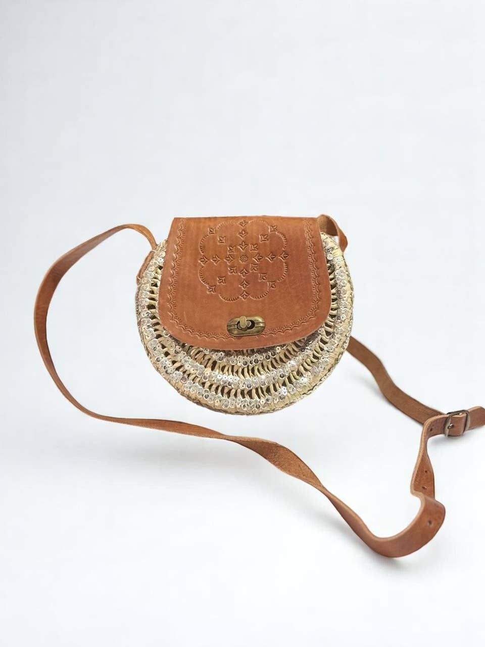 Brown leather cross body messenger purse, shoulder purse