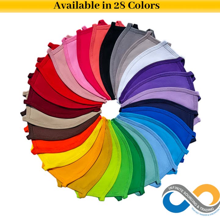 Match your events, parties and school colors with best reusable face mask with nose wire and adjustable earloops. Additional protection with filter pocket. Premium quality blank reusable face mask for Cricut, Heat Transfer and Iron on decorations! ***Ideals for*** - Indoor events - Schools, Colleges - Wedding party - Funerals - Birthday party And more! ***Product features*** - Candle test passed! - Nose wire - Adjustable earloops - Filter pocket - Can be used as N95 covers - Individually package - Available in 17 colors - Full coverage adult size - Relax fitted with plenty of room to breathe while wearing all day long! - Washable and reusable - Breathable & Light weight ***Same day shipping*** Our cutoff time for same day shipping is 3.30PM PST. Overnight shipping is available upon request! Check out more colors https://www.faire.com/product/p_jm82pdysg7 Check out our ⭐️⭐️⭐️⭐️⭐️1,300+ reviews on Etsy https://www.etsy.com/shop/InfiniteSourcing Questions? Contact us!