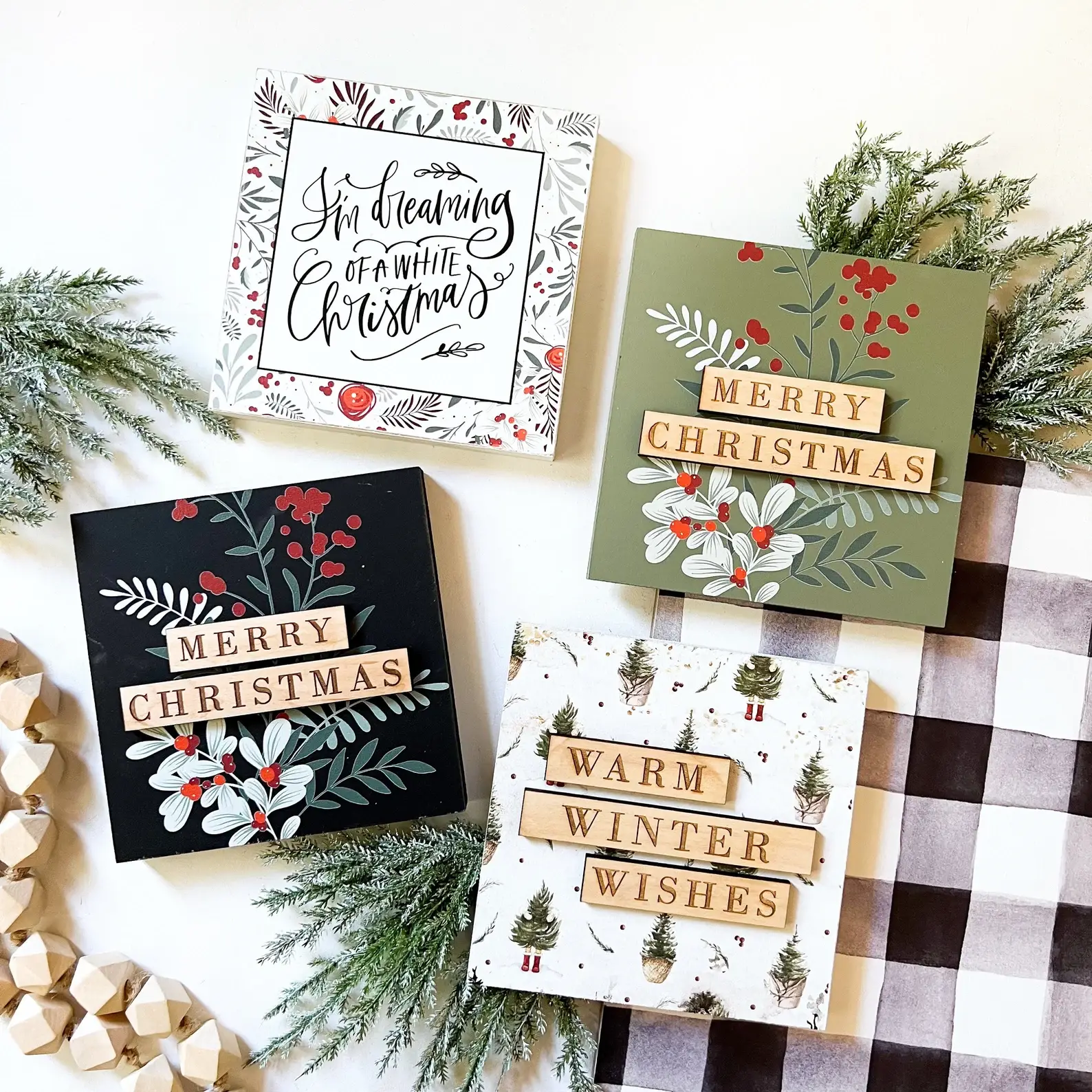 Mini, tiered tray signs with bible verse scripture, perfect for styling and to sit on a shelf in any area of your home! - Size: approximately 6"x6" for all styles. The inner wood piece is nailed on in the 4 corners with the brass nails to give each sign a unique, multi-level look! - These are intended to sit within a tiered tray or on a shelf, so no picture hanger is included on the back. - WillowBee stamped logo on the back.
