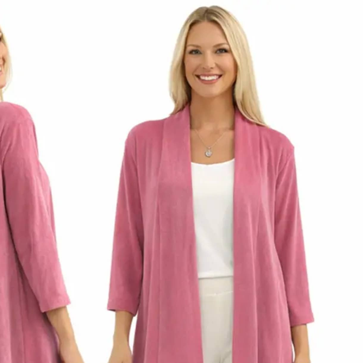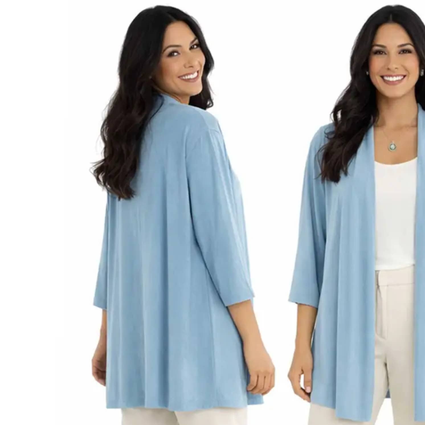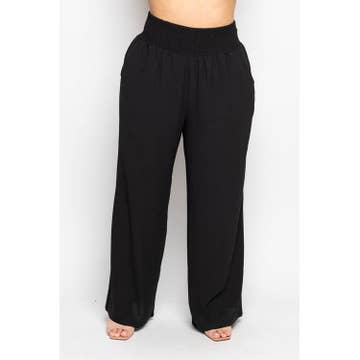 Pants with a soft easy flowing pleats in a comfortable mid-weight fabric. A one size stretchy waistband and no-sew hems make these pants a sure winner. Pant Length 40" (may be shortened without sewing) 92% Polyester, 8% Spandex
