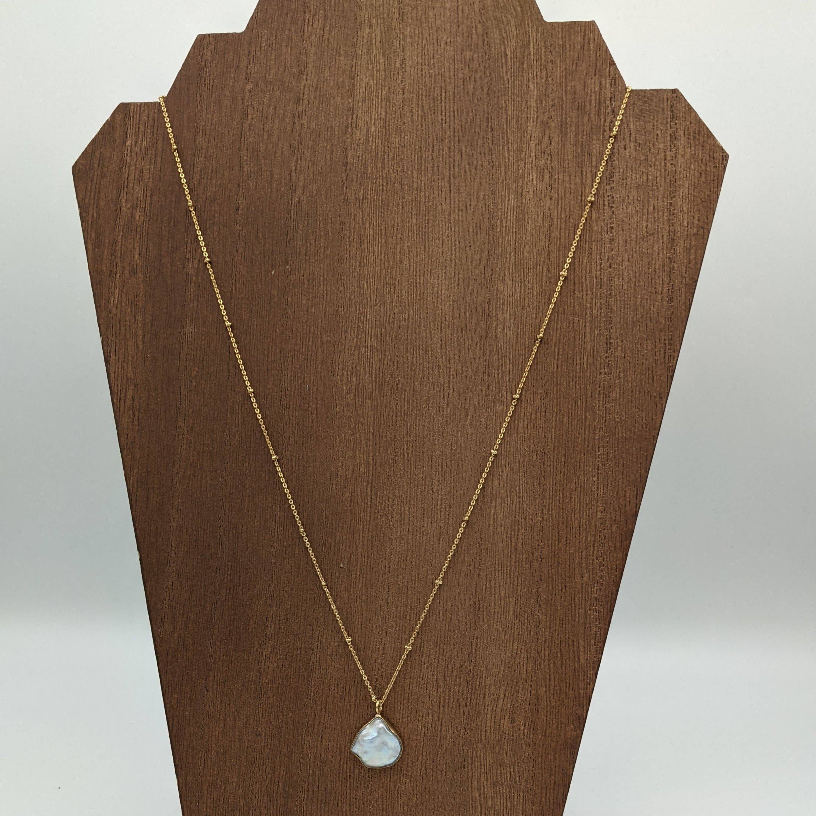 This necklace is the one you've been waiting for! Featuring a bold chunky chain and a bigger than life pearl clasp, it's a super wearable pearl look for right now. Our artisans carefully selected each of these baroque freshwater pearls for their beauty and uniqueness. Now available with a double pearl clasp! This necklace is lightweight and works just as well for your crewneck t-shirt and denim jacket as it does for your little black dress, and it's sure to draw comments regardless of what you pair it with. Check out our Baroque Pearl Bracelet and Coin Pearl Studs to complete your look! The inner diameter of this necklace is approximately 17" when clasped, 18.75" from pearl to clasp when open.