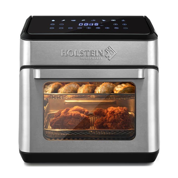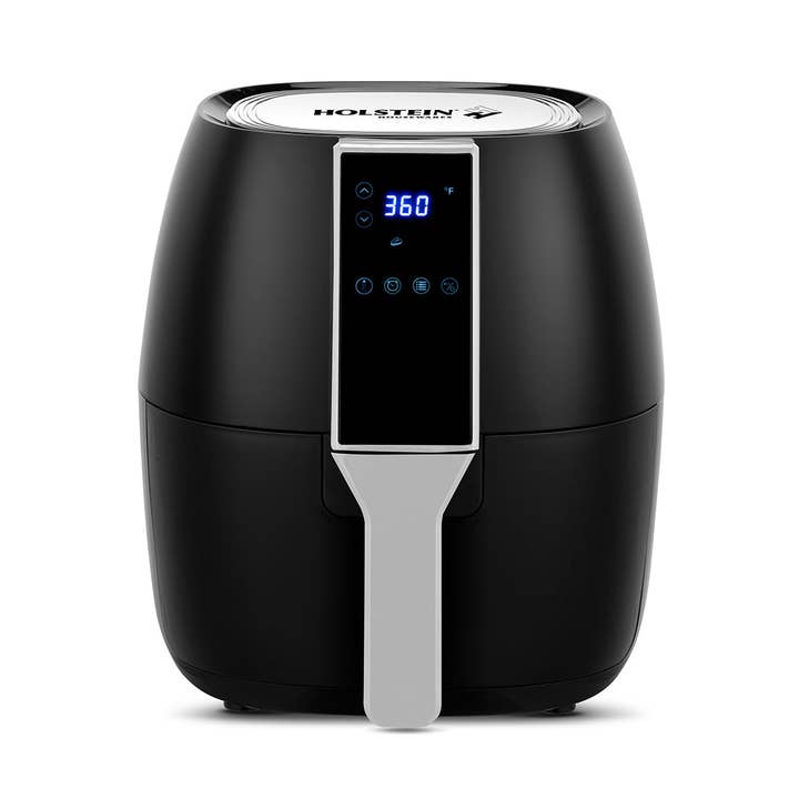 Introducing the Holstein Housewares 4.2 QT Digital Air Fryer with Glass Basket, a modern solution for healthier cooking. This powerful air fryer features a digital interface with temperature control and a timer that can be set up to 60 minutes, offering precision for your favorite recipes. The 4.2 QT glass basket allows you to monitor your food as it cooks, while the overheat and microswitch protections ensure safe operation. Designed with non-slip feet, this air fryer stays securely in place, making it a functional and stylish addition to your kitchen. - Versatile cooking: air fry, bake, dehydrate and roast healthier recipes - Features a unique, durable 4.2 QT glass basket that allows you to monitor your food as it cooks. - Hot Air Technology : cooks your food quickly with less or without oil. - Convenient functions: preheat, keep warm, shake, and over-heat protection. - Precise temperature control: Adjustable temperature to suit various cooking needs. - 60-minute timer