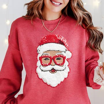 Red Glasses Faux Sequin Santa