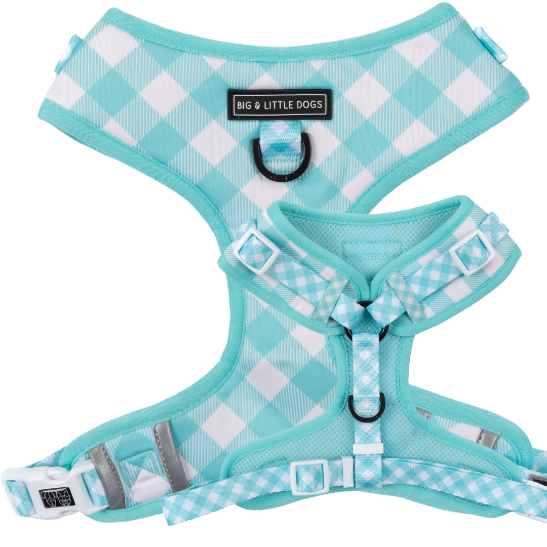 Introducing the BIG & LITTLE DOGS All-Rounder harness * Designed for comfort and style with a custom design * Lined with breathable air mesh for extra padding * Reflective trim for visibility at night * Lockable security buckle on neck to avoid harness having to go over your pups head plus 2 BIG & LITTLE DOGS branded buckles around belly for easy slip on and off * Sturdy BLD branded d-ring for attaching leash or restraint clip to rear plus leash clip at front, so that the harness can be used as a front-leading harness * Fully adjustable polyester webbing straps for a customised fit * Handle for training, control and manageability