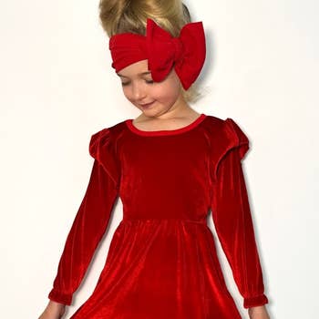 Red Velvet Girls Christmas Dress Vintage Style Baby Toddler