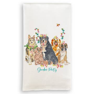 Custom Golden Retriever tea towel. Tea towel is made of absorbent and durable 100% premium cotton. Towel measures approximately 27"x27" with a corner loop for convenient storage or hang drying. The image is put on the towel with a commercial heat press and heat transfer paper. Our tea towels make a wonderful way to bring your personality into the room, and you can't help but love them! No two towels are exactly alike.