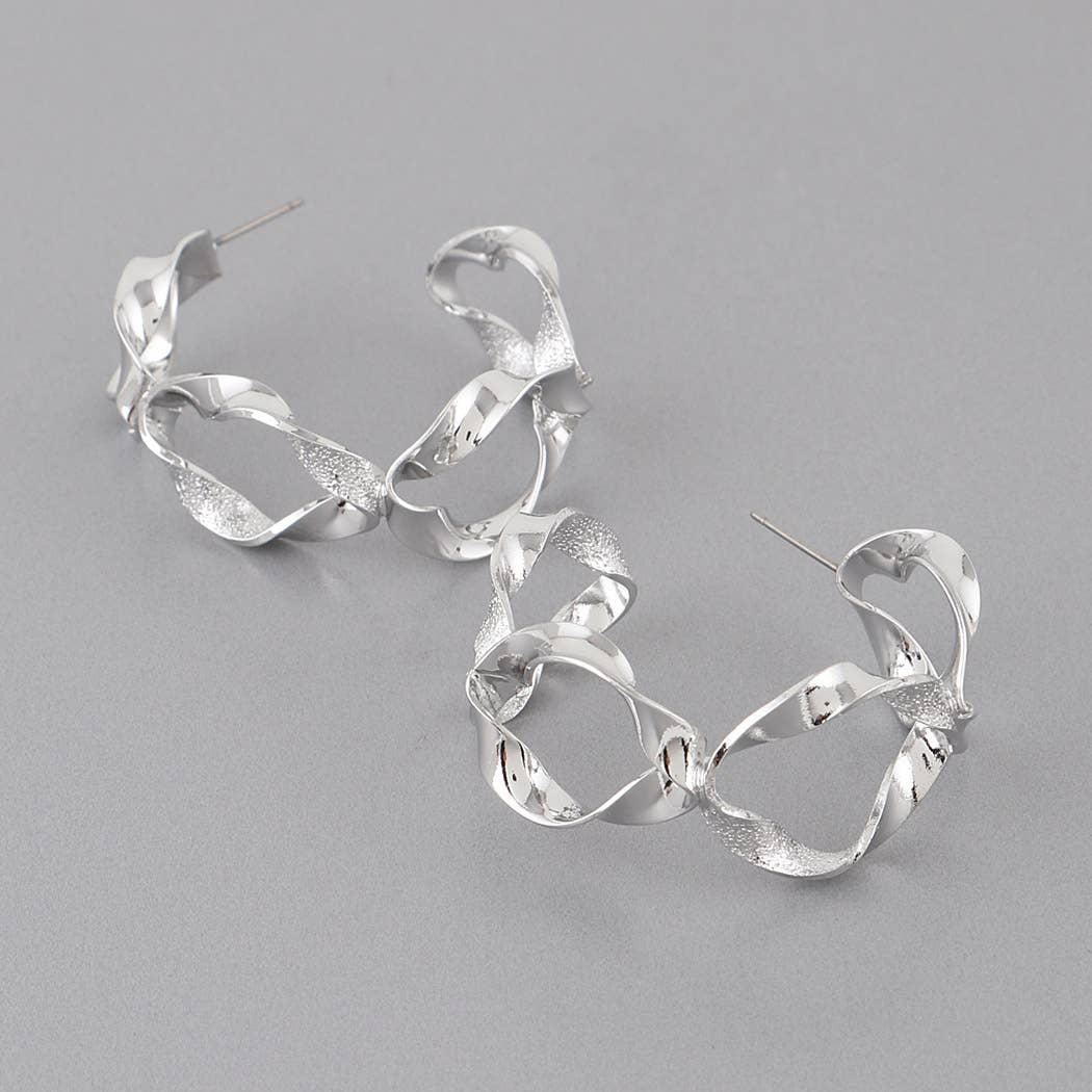 FR3853 All Silver Twisted Metal Hoop Earrings