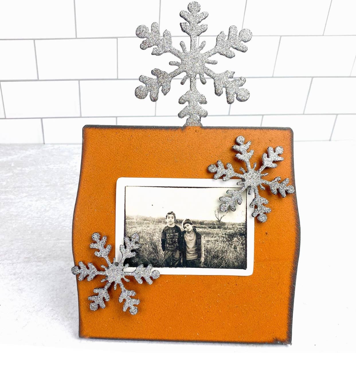 You can add the latest snapshots of your special someone to our magnet frame. Our affordable painted metal Picture Frame holds pictures or memos and takes the hassle out of displaying photos . Our frames accommodate several photo sizes: wallets, 3x5, 4x4, 4x6, 5x5. Comes with two magnets and painted in assorted colors. Our Metal art magnets are designed to be combined with Whimsies frames and memo boards to create whimsical, colorful, personalized art for your home. Our metal is steel with a patina finish, clear coat of polyurethane to protect the surface. All our products are proudly made in our studio in Texas using US steel. Small Batch Maker