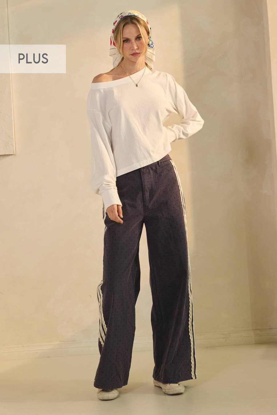 Plus Acid Wash Tired Mixed Fabric Palazzo Pants