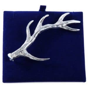 1.25" hard enamel pin w/ transparent enamel details; gold metal finish. Mounted to retail display card, including UPC barcode and interpretative text as follows: The Moose is the largest antlered animal in the world. Bulls may weigh between 800-1200 pounds and cows weigh about 600-800 pounds. These solitary animals are at home in the water, submerging for 3 to 4 minutes and swimming for miles. Their 1” wide nostrils shut tight while under water. They breed in late September/early October, and shed their antlers in December/January. 10% of your purchase of our Wildlife Series is donated to wildlife conservation/rehabilitation! 2025 © Eagle River Designs
